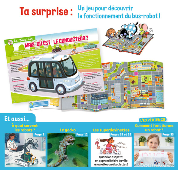 Dans une “navette autonome”, comme il en existe déjà dans certaines villes, il n’y a pas de conducteur. Ce petit bus-robot est piloté par… un ordinateur ! Avec ce jeu Youpidoc, tu vas pouvoir comprendre le fonctionnement du bus-robot !